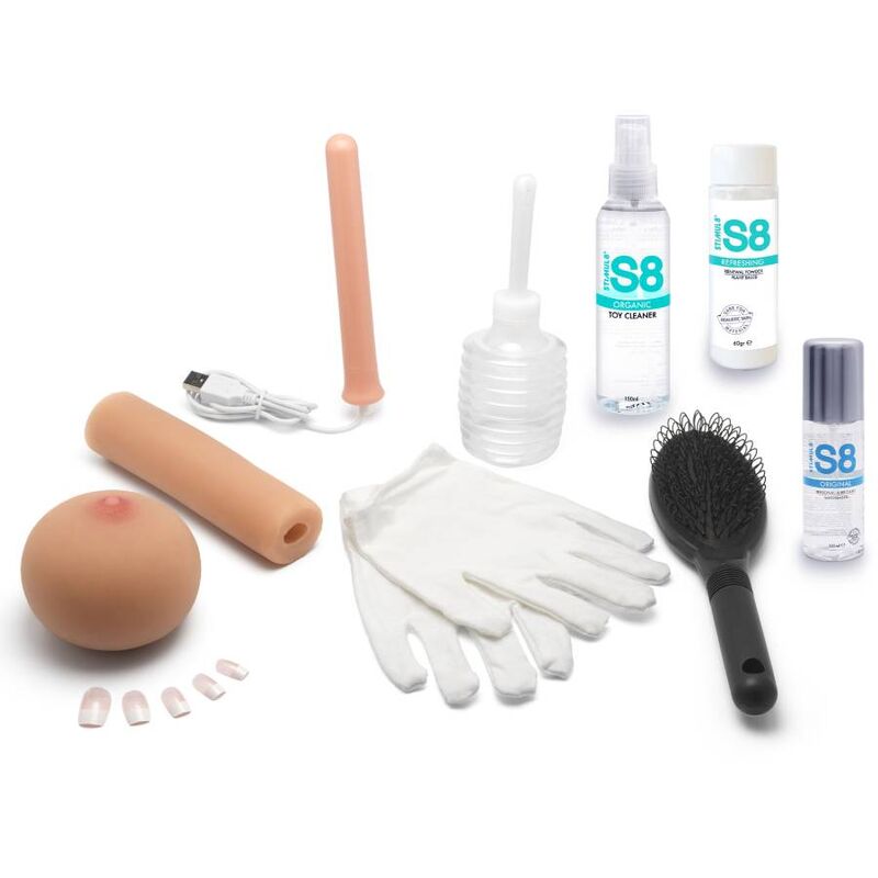 Esta boneca de luxo vem com uma vasta gama de acessórios para manter a sua aparência e sentimento, o seu melhor em todos os momentos! Incluído no pacote estão dois conjuntos de lingerie impertinentes, limpador de brinquedos S8 Quality, lubrificante S8 Silky, pó S8 Renewal, luvas de algodão branco para mover/manusear a boneca, um conjunto de unhas de reposição, uma varinha de aquecimento USB, um irrigador de limpeza, um escova de cabelo e extensas instruções de cuidados. Se você quer o negócio real, este Bangers Babe é o seu par perfeito e prazeroso! Observe que, devido ao seu tamanho e peso, este item não vem em embalagem de produto convencional e, em vez disso, será enviado em uma caixa de papelão discreta.