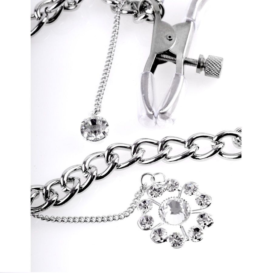 A quantidade de pressão que você aplica ao mamilo é ajustável girando o parafuso, enquanto os cristais pendurados adicionam um toque de elegância e estilo!