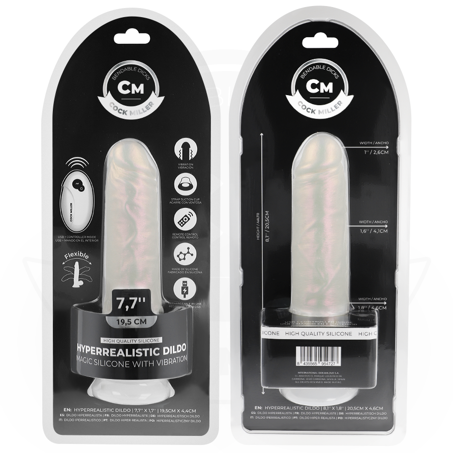 O COCK MILLER 20,5 cm é um dildo realista de alta tecnologia que redefine o prazer íntimo. Com design anatômico ultra realista, iluminação interna em LED e motor vibratório multivelocidade, este vibrador de silicone premium oferece uma experiência sensorial intensa e sofisticada, ideal para uso solo ou com parceiro(a).