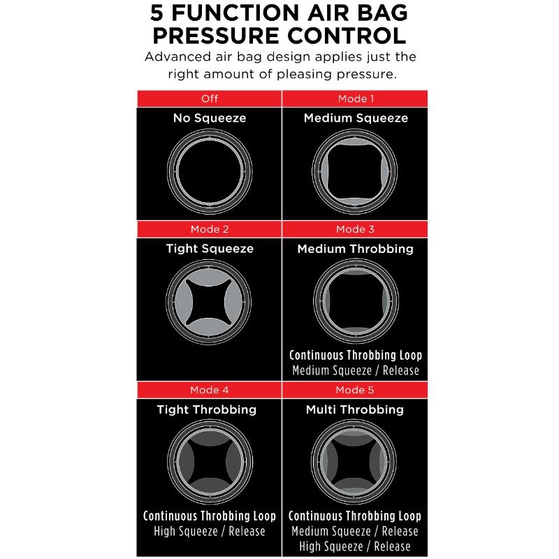 Controle de pressão do airbag de 5 funções - O design avançado do airbag aplica a quantidade certa de pressão agradável. Pressione para ativar e segure por 3 segundos para liberar.