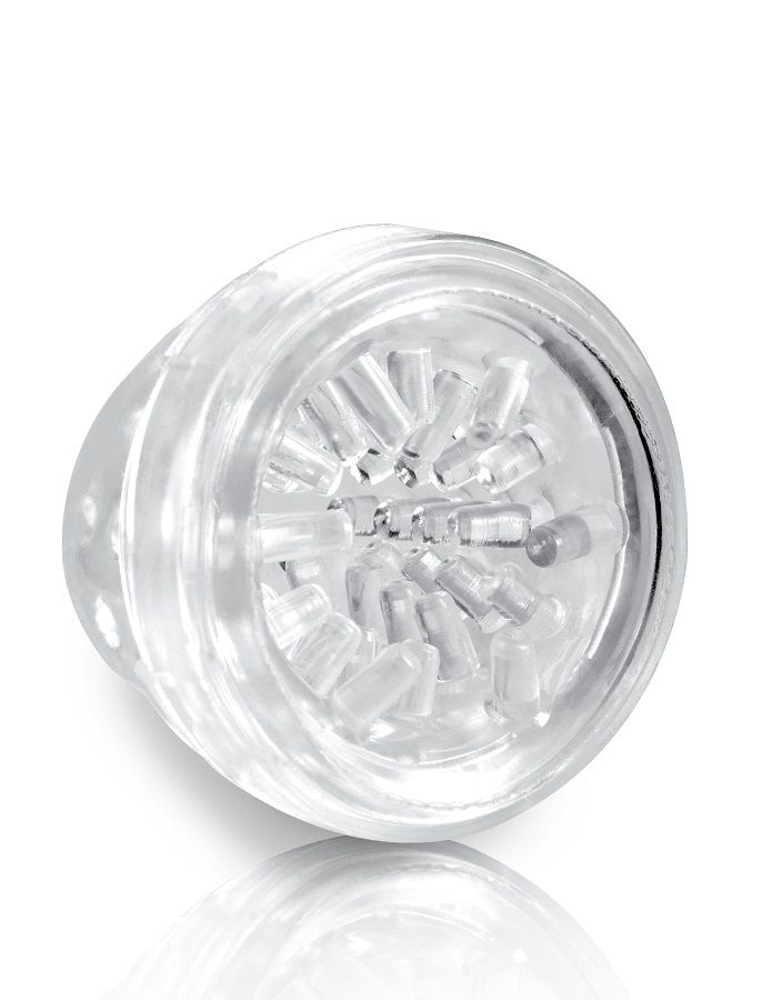 INSERÇÃO TEXTURADA INTERCAMBIÁVEL A manga de elastômero é removível e pode ser virada do avesso para facilitar a limpeza após a diversão. Use bastante Moist antes da inserção para uma experiência ainda mais úmida e selvagem!